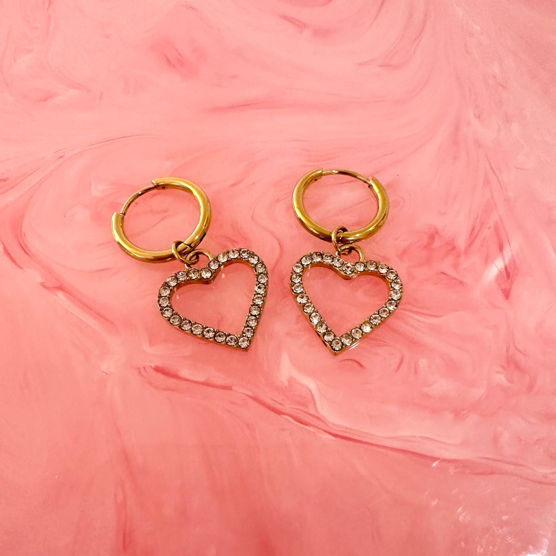 - Crystal heart charm on mini gold hoop